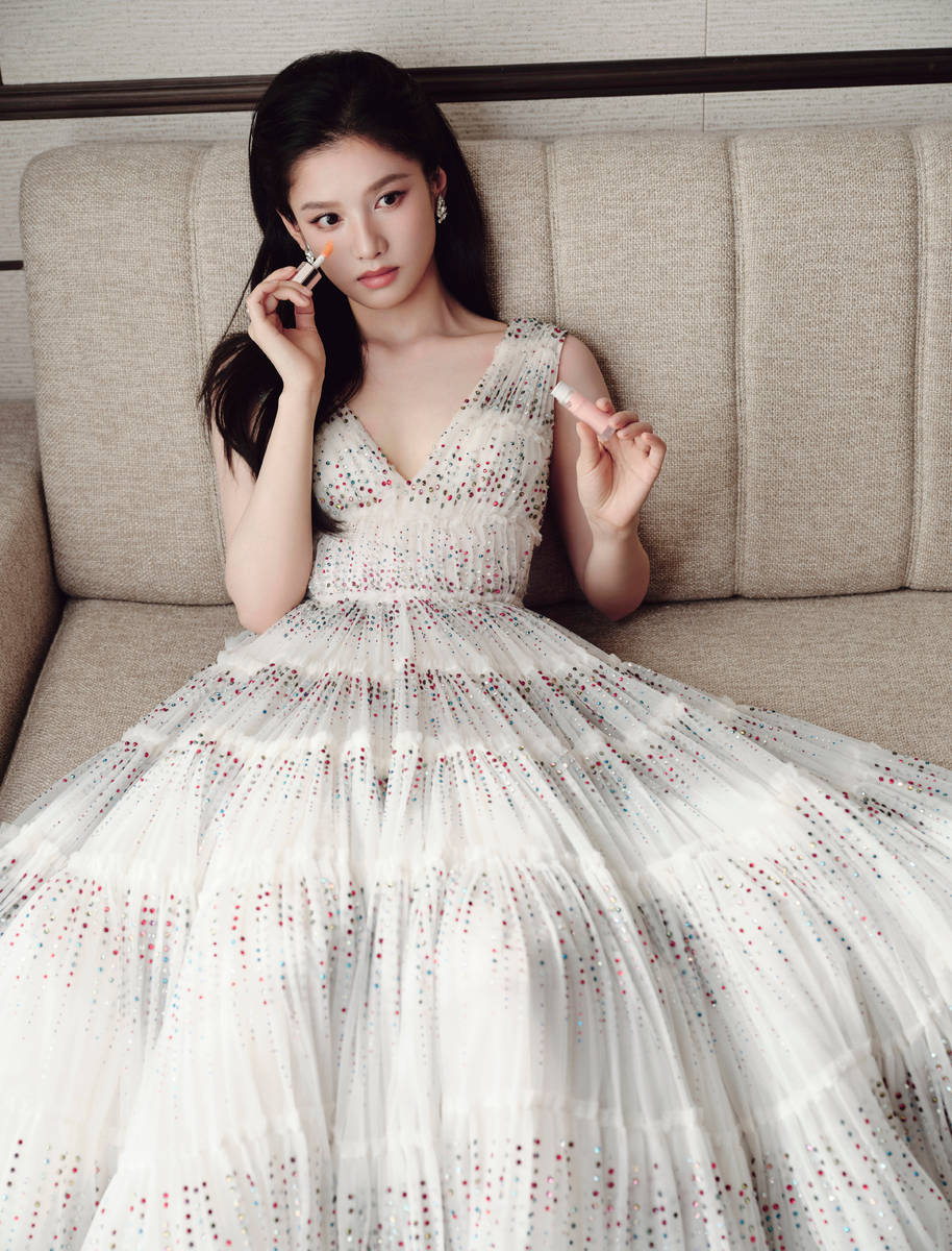 熟悉张婧仪的观众不难发现,她的气质始终带着一种“矛盾的和谐”。早年在《风犬少年的天空》中,她是敢爱敢恨的马田,带着青春期特有的倔强与鲜活;而在《一见倾心》里,她饰演的沐婉卿又将民国千金的端庄大气拿捏得恰到好处。此次活动的白色纱裙造型,恰好是这种气质的完美融合——纱裙的柔软中和了她眉眼间的英气,而她挺拔的身姿又避免了纱裙容易出现的甜腻感,轻提裙摆时微微倾斜的肩头,慵懒中透着随性,仿佛是镜头不经意捕捉到的自然瞬间。