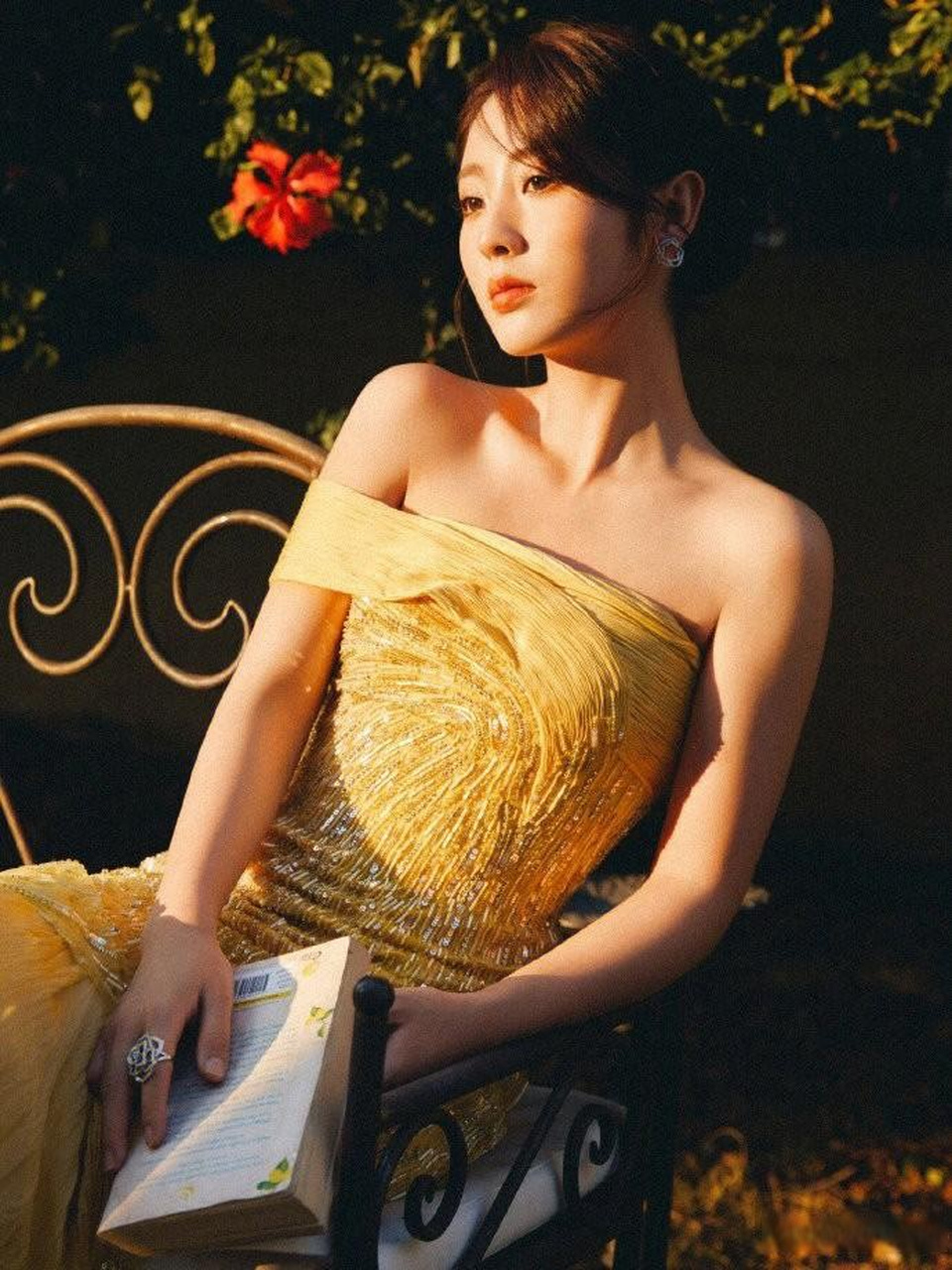 光影运用是营造”优雅恬静”氛围的关键。参考时尚圈”丁达尔效应在服装中的应用”,邢菲的照片大概率采用了柔和的漫射光而非直射强光。这种光线处理让亮片礼服呈现出”柔光漫反射”效果,而非刺眼的高光,光泽感更显温润。光线可能从侧上方投射,在礼服裙摆形成渐变的明暗层次,既展现了面料的垂坠感,又为画面增添了纵深感。与Claire Danes光纤礼服的科技感强光不同,邢菲造型的光线更具”生活化温度”,恰如其分地呼应了社交平台”分享日常美好”的核心属性。